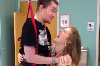 Джоэл Джексон из штата Флорида, все четыре конечности которого оказались парализованы в результате автоаварии, станцевал со своей женой Лорен с помощью страховочных ремней, пишет Metro. Джексон, едва касаясь ногами пола, станцевал с супругой под песню I’ll bе Эдвина Маккейна.