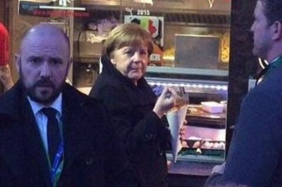 Очевидцы засняли канцлера на фото- и видеокамеры, после чего опубликовали снимки и записи в интернете.