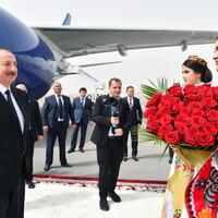 Президента Азербайджана встречали премьер-министр Таджикистана Кохир Расулзада и другие официальные лица.