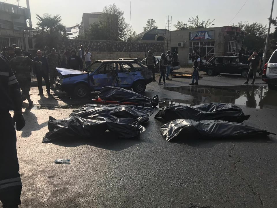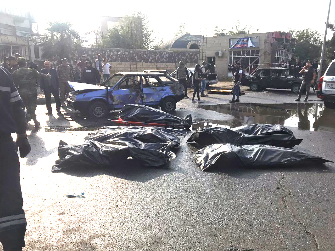 В результате погибли мирные жители - Джафарова Офелия Меджид гызы, Ахмедова Айбениз Ашраф гызы, Исмаилов Эхтирам Халил оглу и Искендерова Айсу Ровшан гызы, 2013 года рождения, 13 человек получили ранения.