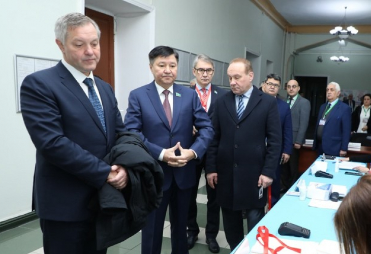 После открытия участка для голосования в 08:00 глава миссии наблюдателей МПА СНГ ознакомился с условиями здесь, задал несколько вопросов главе участка.