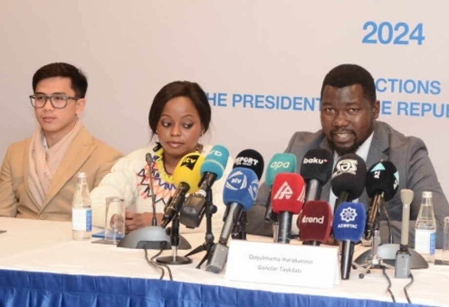 Пресс-конференция миссии наблюдателей от Молодежной организации Движения неприсоединения (ДН), посвященная предварительным итогам внеочередных президентских выборов, прошла в Баку 8 февраля.
