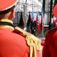 Начальник почетного караула отдал рапорт президенту Азербайджана.