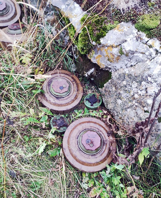 В результате было обнаружено и обезврежено 100 противопехотных мин ПМН-Э, 8 противопехотных мин ПМН-2 и 10 противотанковых мин армянского производства.