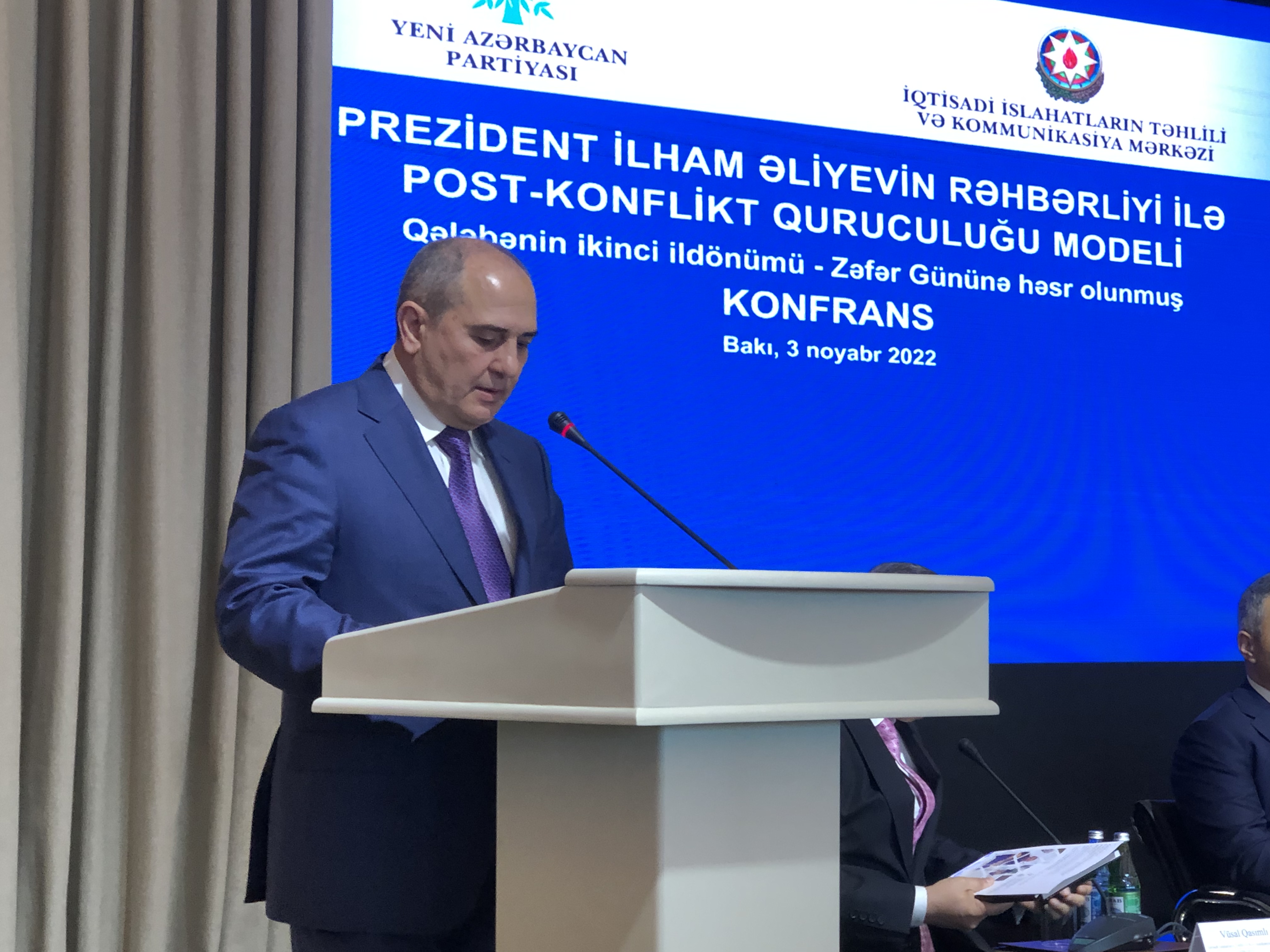 Oб этом сегодня на конференции, организованной ПЕА совместно с Центром анализа экономических реформ и коммуникаций на тему «Модель постконфликтного строительства под руководством победоносного Верховного Главнокомандующего Ильхама Алиева», посвященной второй годовщине Победы, сказал заместитель председателя ПЕА - руководитель Центрального Аппарата Таир Будагов.