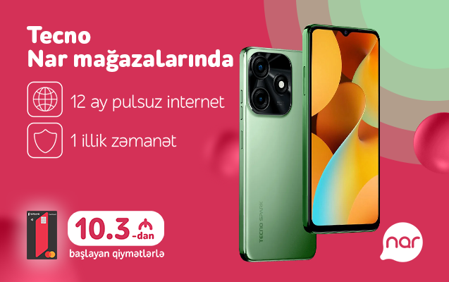 Nar представляет в своих центрах продаж и обслуживания линейку популярных моделей смартфонов Xiaomi и Tecno по выгодным ценам. Приобретите смартфоны Xiaomi или Tecno за наличные или банковскую карту BirKart и получите специальную скидку до 10%. Более того, при покупке смартфона клиенты получают 12 месяцев бесплатного доступа в Интернет и годовую гарантию.