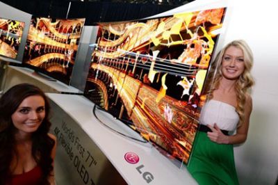Компании LG и Samsung на выставке CES, которая проходит в Лас-Вегасе, показали телевизоры с "гнущимися" экранами. Нажимая на кнопку на пульте управления, пользователь может превращать телевизор из плоского в вогнутый, и наоборот.