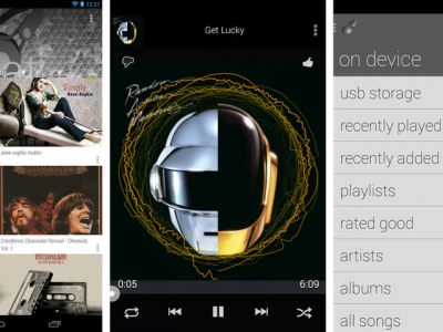 Как и у многих других плееров для Android, в Beat предусмотрена специальная панель управления, плавающая поверх других приложений. В обычном состоянии она свернута в небольшую кнопку с изображением обложки проигрываемого альбома. Но стоит только ее коснуться, как она разворачивается в панель, на которой можно посмотреть, что именно воспроизводится, перемотать трек вперед, назад, сделать паузу и т.п. Это очень удобно, если вы совершаете серфинг по вебу, сидите в чате, читаете электронную книгу или заняты в любом ином приложении.