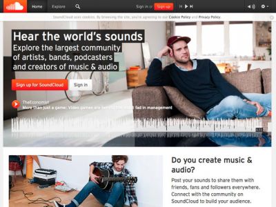 SoundCloud известен как наиболее популярная онлайновая платформа для размещения музыкантами своих произведений или диджеями - миксов. В сервисе есть аналогичные Twitter функции фоловинга и отметки тех или иных записей понравившимися. По последним данным (октябрь 2013-го) у созданного немецкими разработчиками сайта (имеющего также отличные приложения-клиенты для мобильных платформ) около 250 млн пользователей.