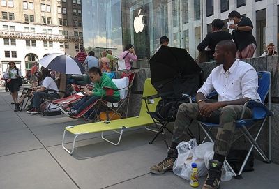 Кстати, не все жители Нью-Йорка выстраиваются в очередь, чтобы приобрести "айфон". Некоторые делают на этом бизнес, продавая свои места в очереди истинным поклонникам "Яблока". Так, в прошлом году один из первых ожидающих получил за свое место целых 7000 долларов.